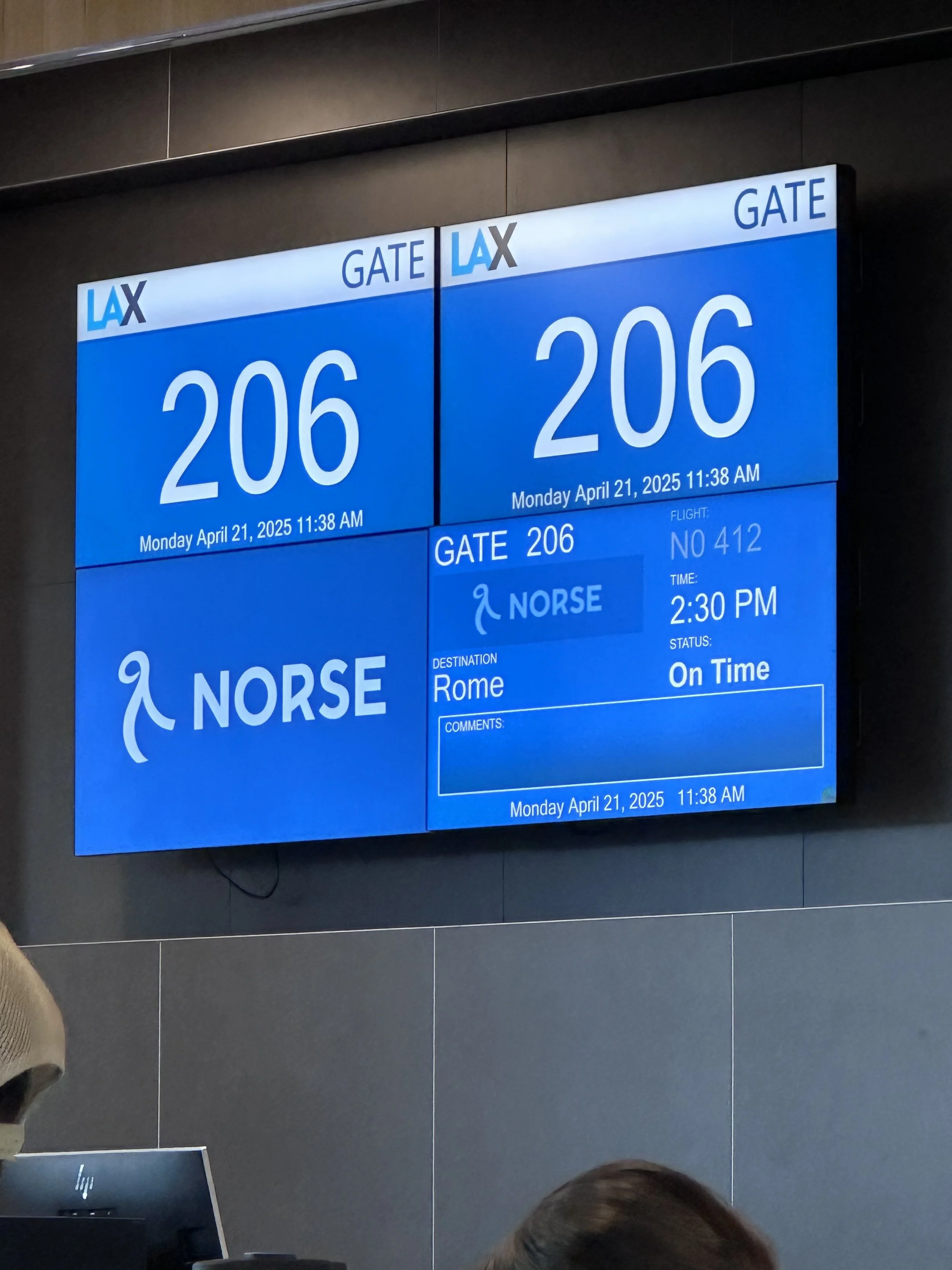 We are on our way! Rome… here we come! It was a bit of a shock to see that after being in the air for forever… (actually only 1 hour), we still had over 10 hours to go! Fortunately, we chose the “Premium Class” on Norse Atlantic for the extra legroom, baggage and food… it’s nice to have a little real estate on a long flight! If you haven’t considered Norse… they fly 777 Dreamliners that are configured like a business class. LAX to Rome, Paris, London Gatwick and Oslo cost anywhere from $199 (if you book early) for coach… and can be as reasonable as $500ish for Premium, one way. It’s worth the extra money to have a comfortable seat for a long non-stop flight! (www.flynorse.com)