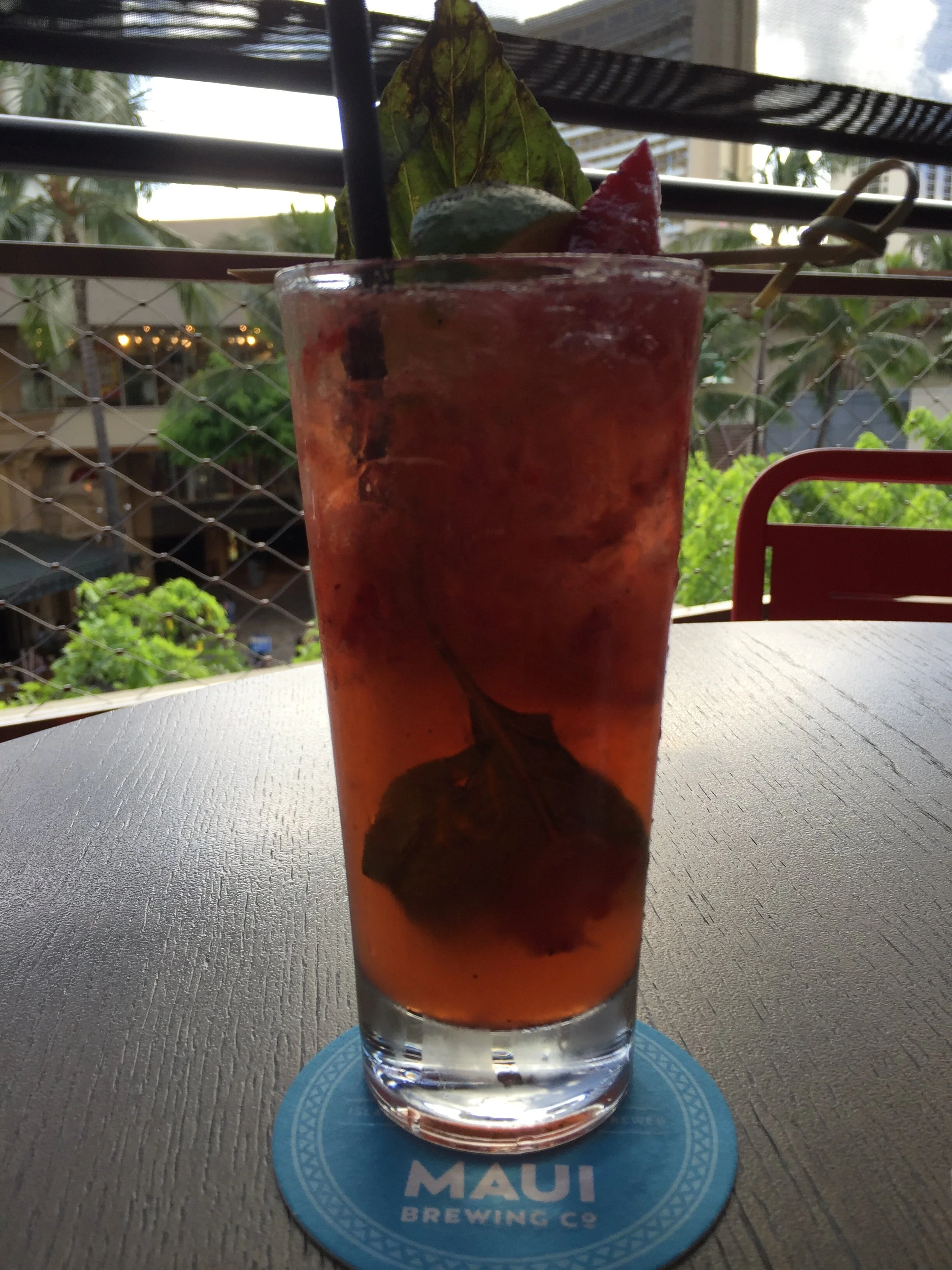 In mid-September, we jumped on a flight from Houston to Honolulu. With a cruise planned departing from Hawaii, we decided to arrive a couple days early to enjoy Waikiki. We also figured it would make most sense to arrive a day before my parents so we could meet them at the airport and help with their luggage and navigation to the hotel. After checking into our room at the Hyatt Regency Waikiki, we walked down the street for Happy Hour at Maui Brewing Company! Cocktails and pupus… the perfect start to our holiday!