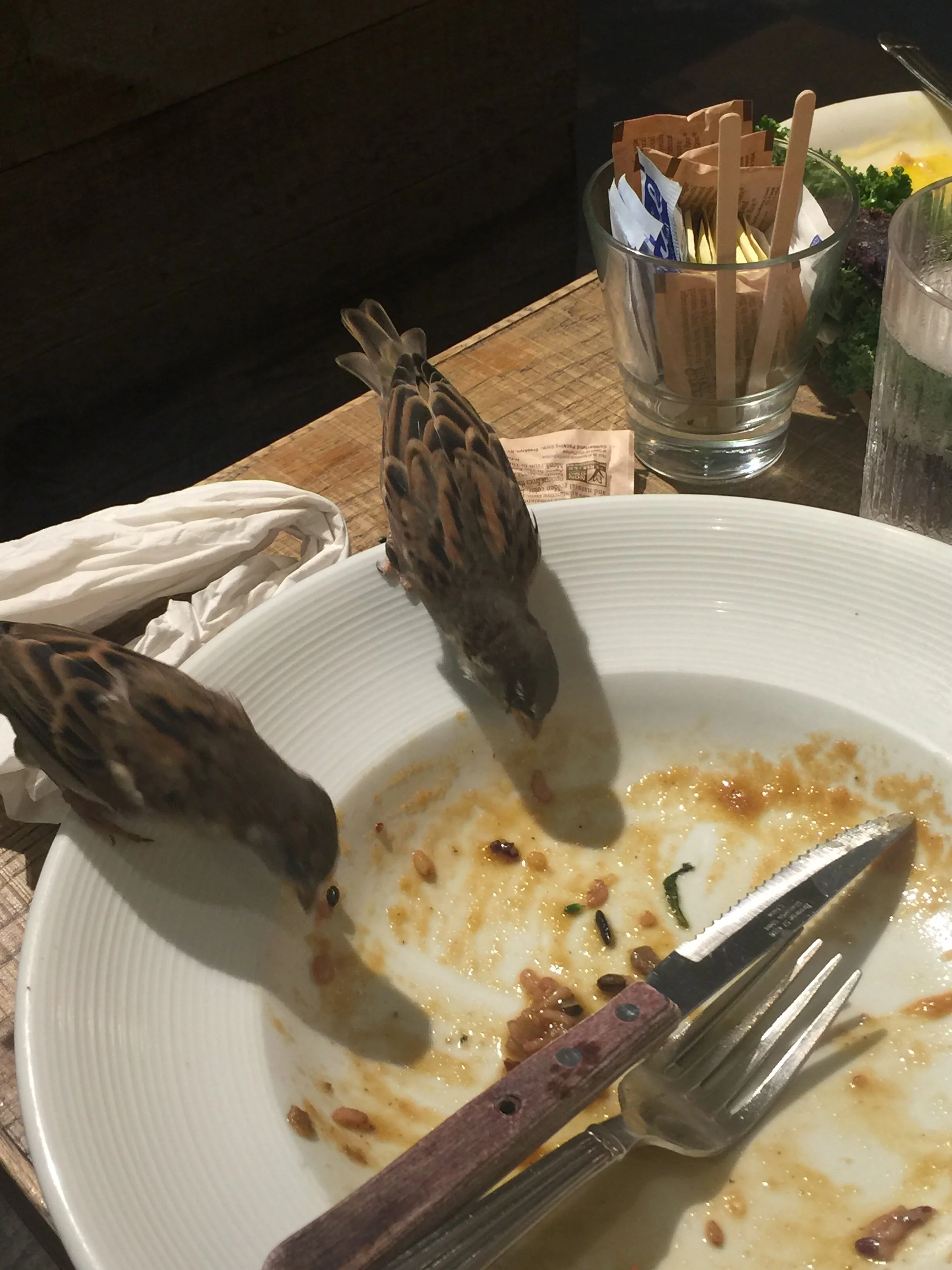 Amazingly, I forgot to take a photo of my delicious breakfast! Oops… All I could think about while I was eating was Bob Marley’s “Three Little Birds”… This trio watched my every move as I ate. Then, as soon as I finished, the swarmed in for the last taste! Obviously, they are practiced at this move as they felt quite comfortable and had no fear of us.