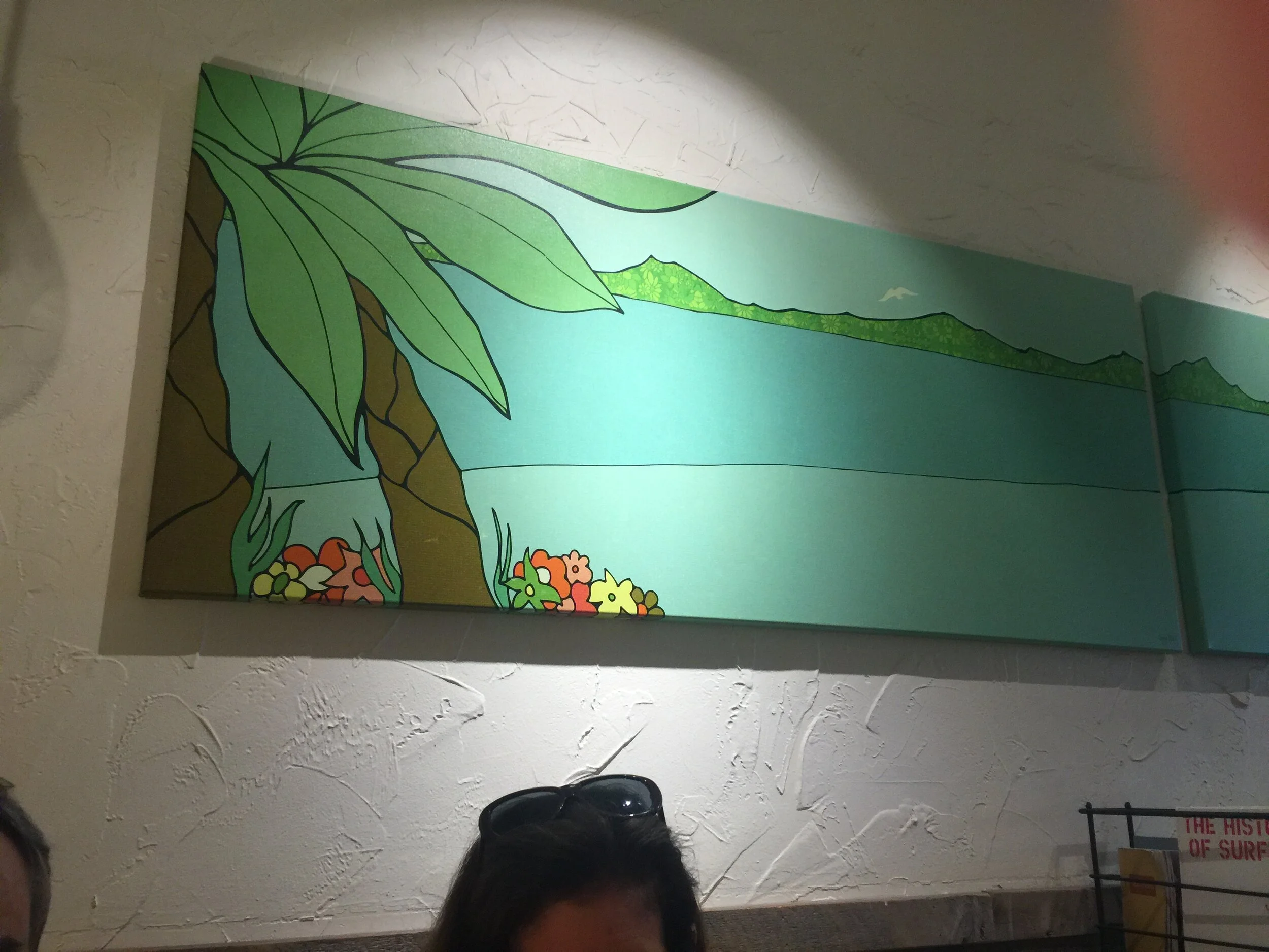 My mom loved the wall decor in the restaurant… so I took a photo. It was a simple design, soothing colors and a tryptic. Very tropical feel to it.