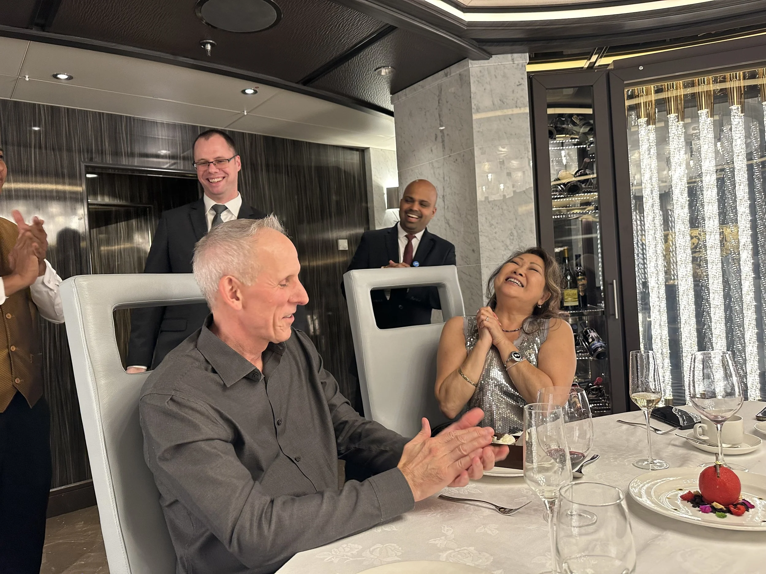 Prior to dessert, the chefs came out to mingle and see how we enjoyed our feast. They had presented every dish, explained how they were made and why they were paired with a specific wine. From beginning to end, the experience was perfect. It was the smallest group I’ve seen on a ship wine dinner but we were seated next to a great couple!