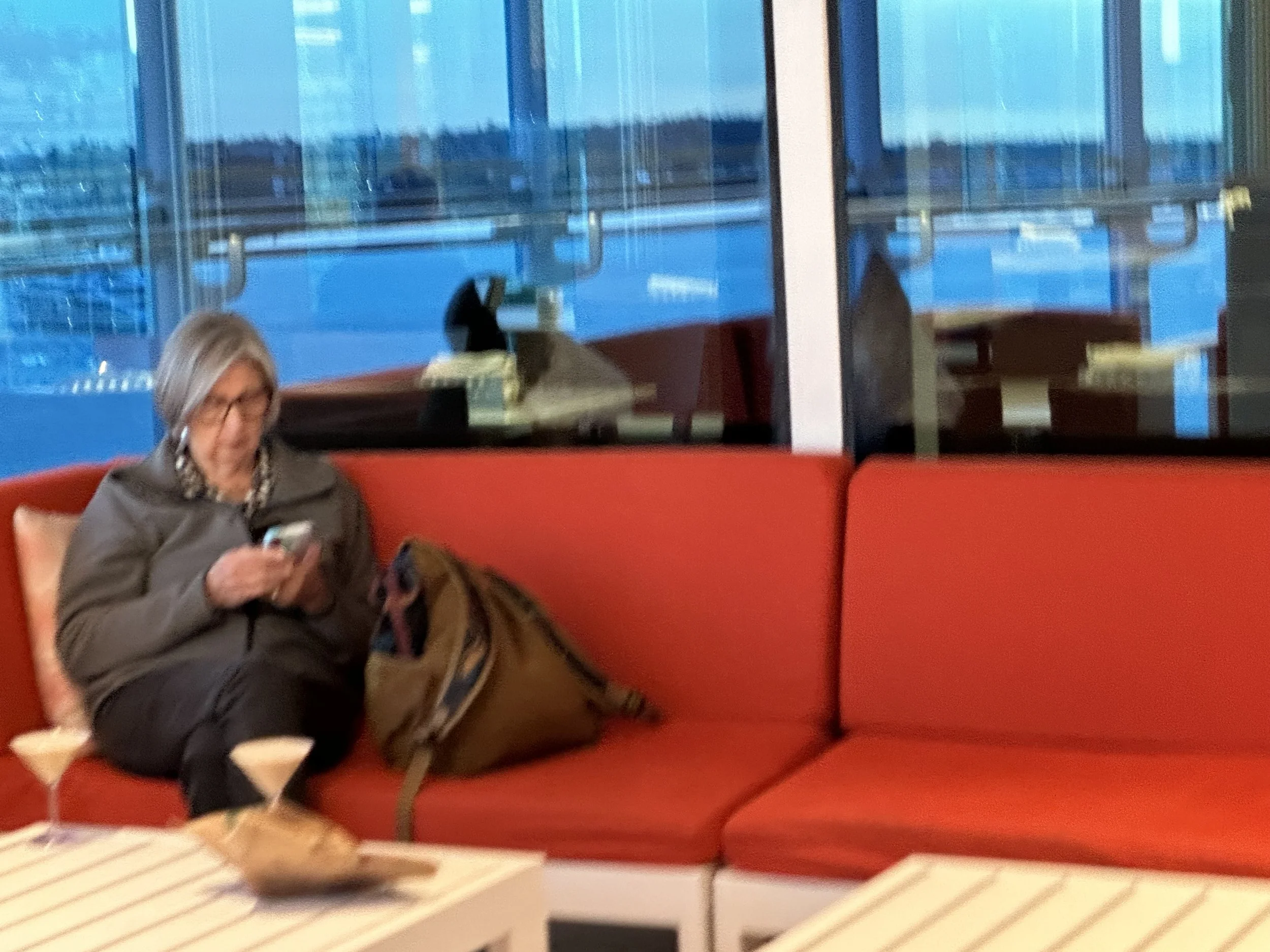 First stop as we returned to the ship… the upstairs bar/lounge area. With perfect weather, it was nice to sit outside and enjoy the view. It was time for an espresso martini… yummy, yummy! The couches area comfortable and there was really no one around. With a late “all aboard”, many were still off exploring.