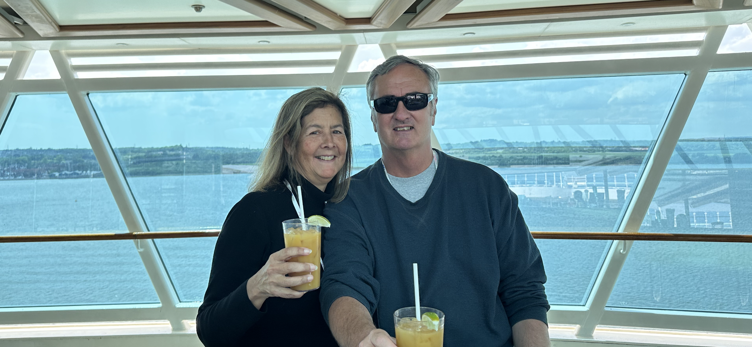 Our cabin steward stopped by to offer us a glass of bubbly! So, I grabbed my portable speaker and glass… headed for the balcony to play “cruising” songs. You know… “Sailing” by Rod Steward, the other Sailing by Christopher Cross and I couldn’t leave out “Sailin’” by Cecilio and Kapono!