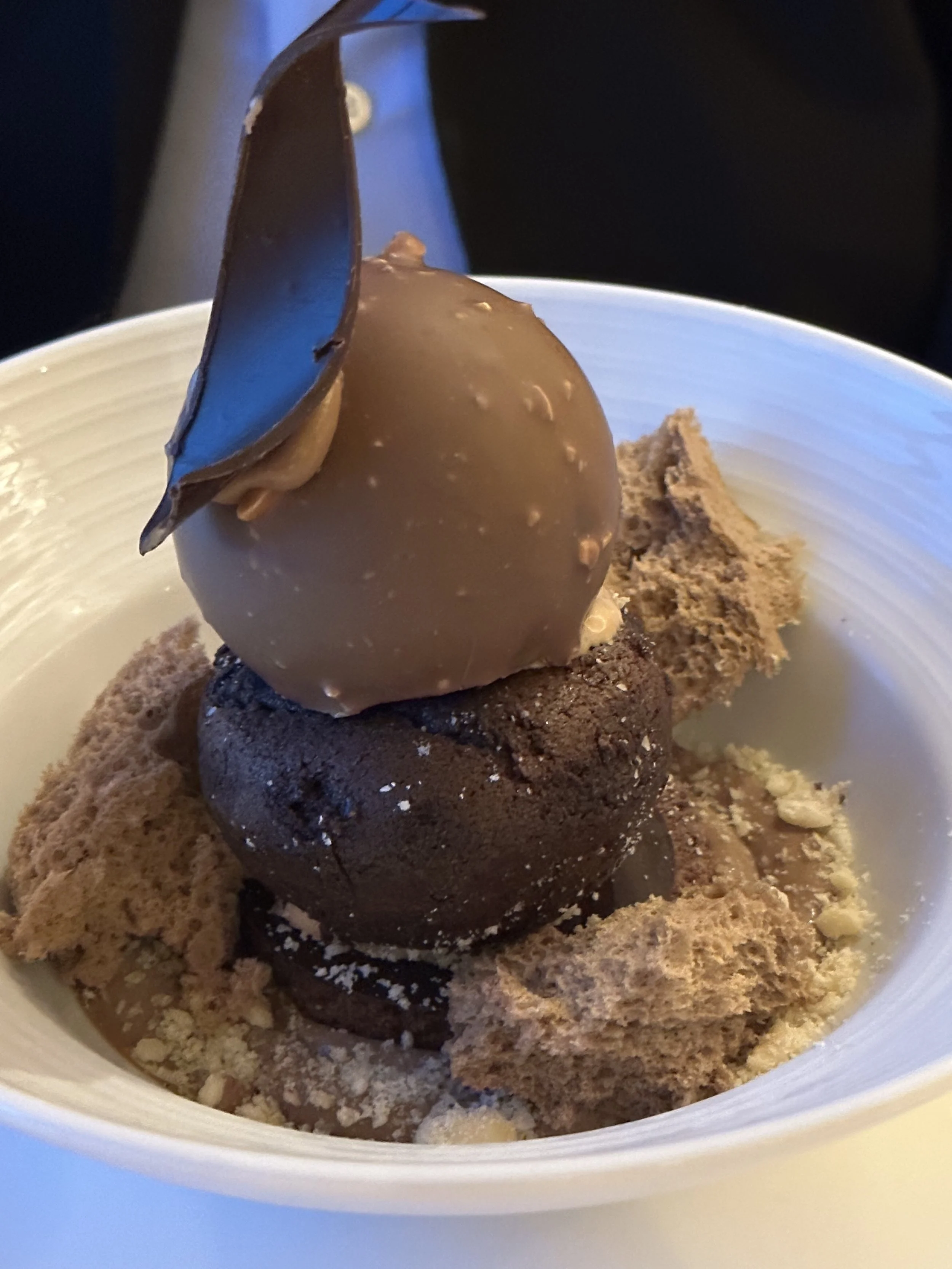 What a way to end the evening… hubby got what is known as “Death by Chocolate”! Boy does that look good! I’m so jealous but it is made of different textures of cake…. a solid chocolate and a spongy chocolate. The thick sauces and hard chocolate shell around the ice cream topped it off! Wow!