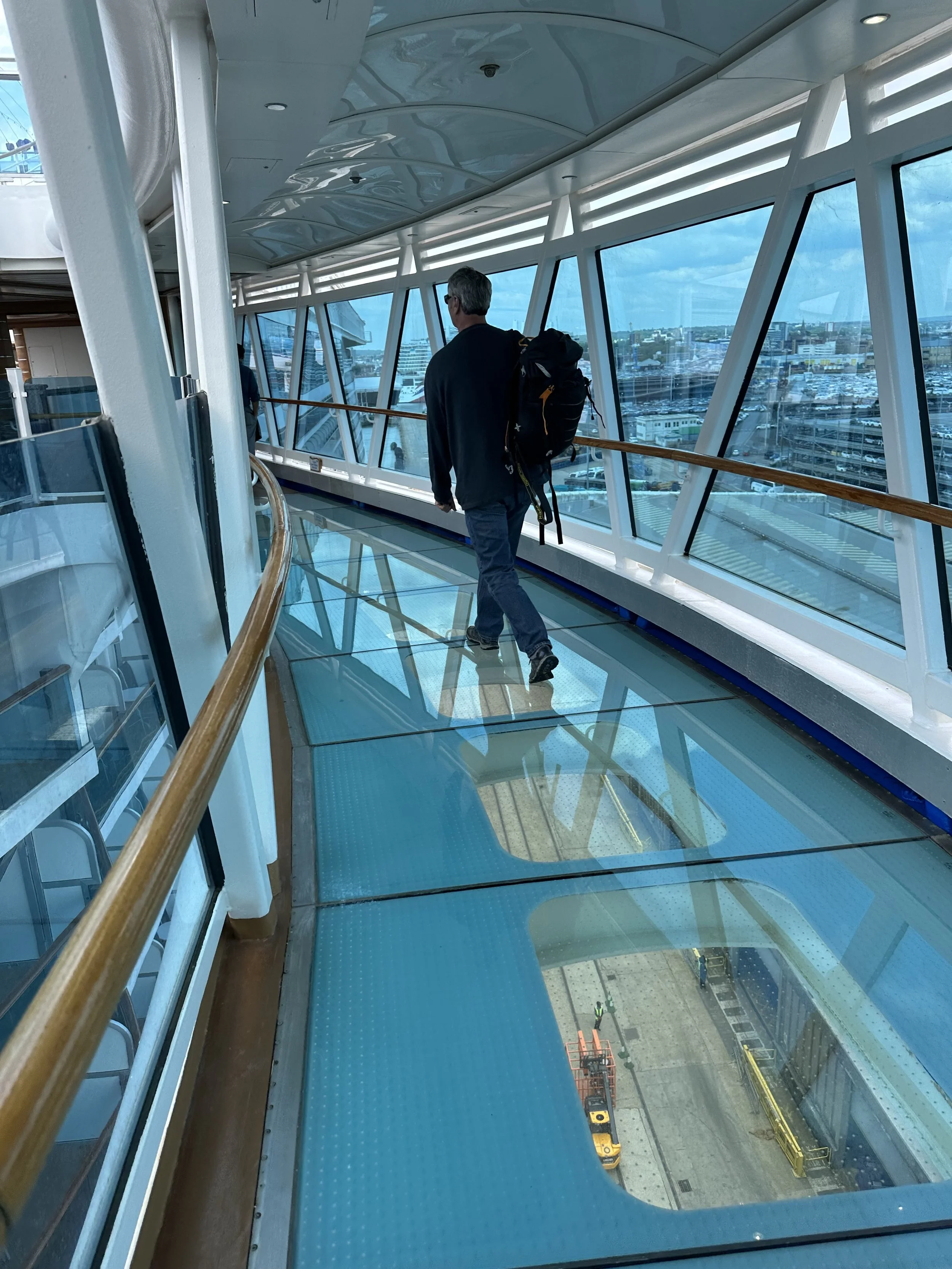 Yikes! Working our way to our cabin, we had to (well… we didn’t HAVE to) cross over this “Sea Pass”. As a person suffering from acute fear of heights, this wasn’t my cup of tea. Hubby walked right across the clear section. For me… it was tight against the rail on the solid part. Of course, I had to reach over a bit to snap this photo… but that was absolutely enough for me! This will be what I work on during the course of the trip. Maybe by the end, I will be able to walk across. I’ll keep you posted!